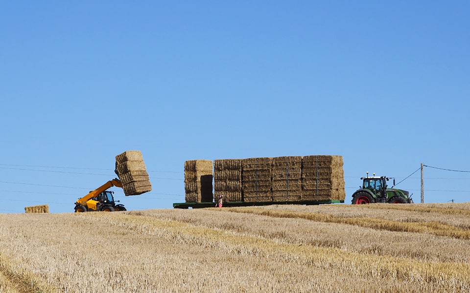 Voici quelques images de notre travail quotidien lors du ramassage et du rangement des bottes de paille.