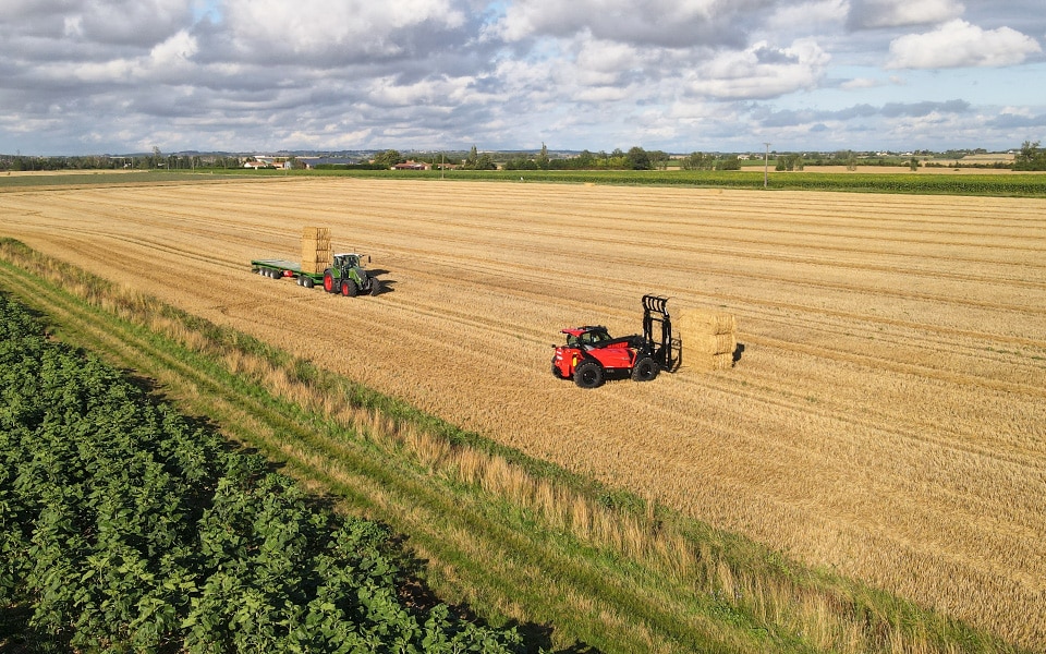 Grâce aux champs situés aux alentours et à notre flotte d’engins, nous transformons et stockons nous mêmes nos fourrages.